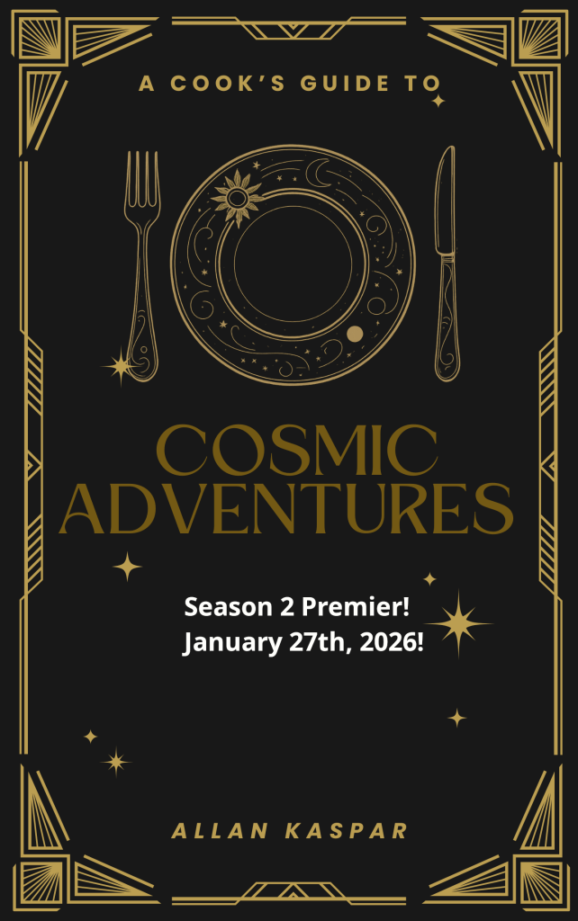 This coming Tuesday, January 27th, will be the Season 2 premier of A Cook’s Guide to Cosmic Adventures! If you haven’t gotten caught up yet? You can binge chapters 1-10 on Royal Road, and it’s all for free!
